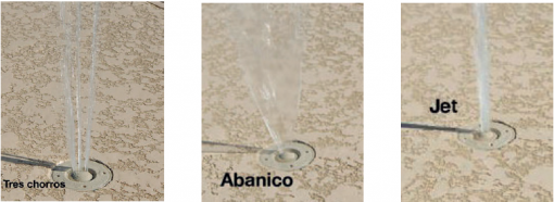 - Tres opciones de boquillas orientables: jet, tres jets y abanico.