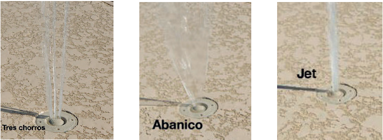 La fuente Trio Deck Jet, fabricada en plástico ABS, queda completamente enrasada con el marco, Agrega emoción y belleza al ambiente de la piscina con tres patrones de rociado diferentes (rociado de agua, abanico o rociado triple) con un sistema simple de boquillas intercambiables que son muy fácil de instalar.